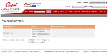 Airpak Express - Enter tracking number to track airpak order tracking, packet, cargo, parcel and get to know the delivery status online.
