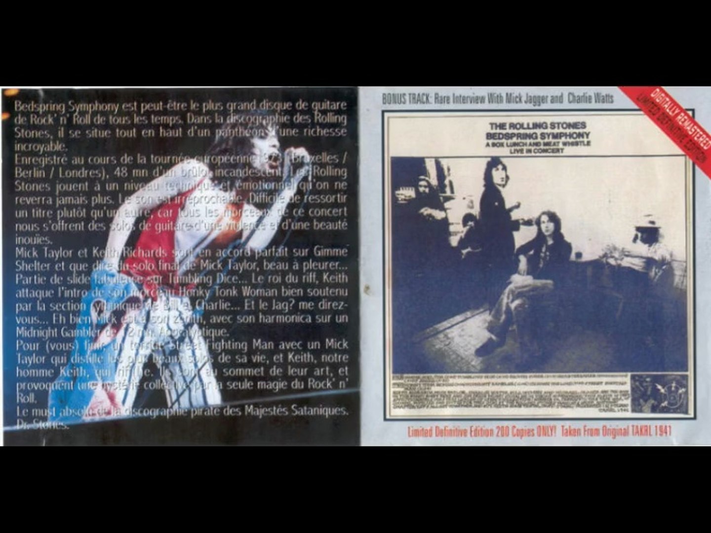 Bedspring Symphony Rolling Stones / Bedspring symphony {stereo boot lp the amazing korynfone record label takrl 1941} genre: Bedspring Symphony Rolling Stones / 0:00 gimme shelter (amazing version) 6:15 tumblin dice 11:12 brown sugar.