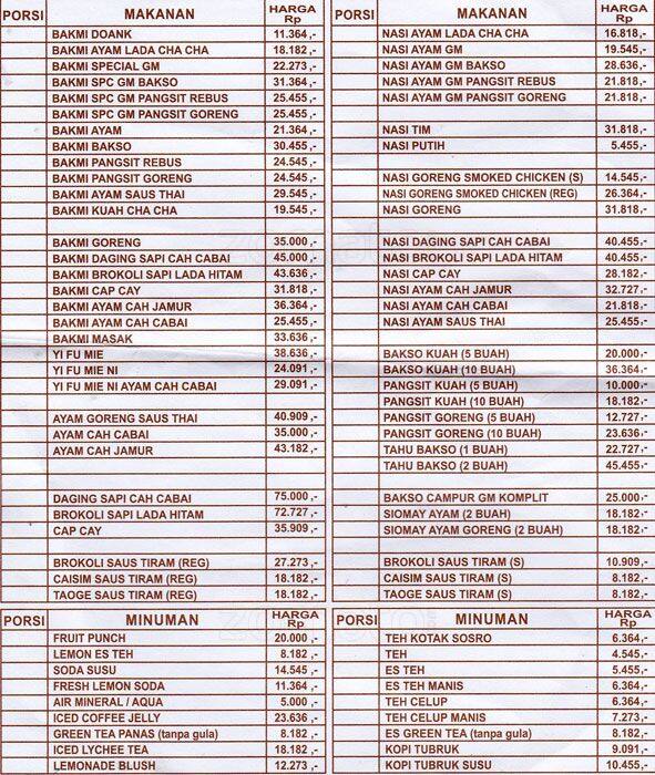 Harga Menu Dan Pesan Antar Daftar Menu Dan Harga Mie Di Bakmi Gm - Daftar harga menu raa cha restoran dan kelebihan kekurangannya.