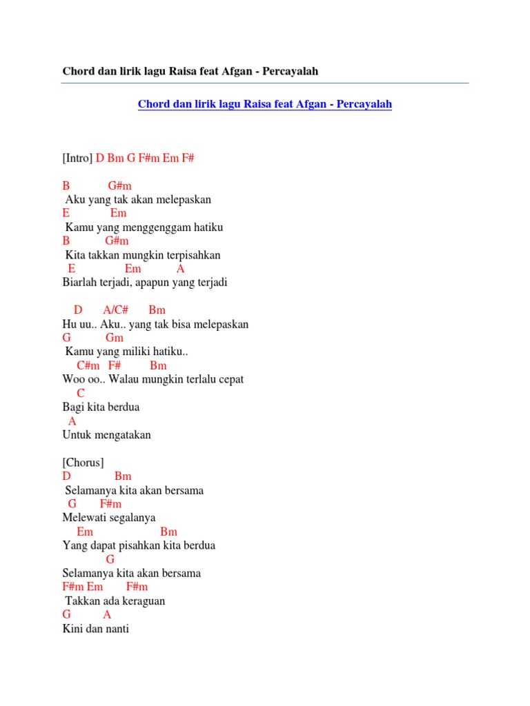 Kunci Gitar Dan Lirik Lagu Percayalah Oleh Afgan Dan Raisa Okezone Celebrity - Lagu dj paling mantul dj takkan pisah versi 30 detik.