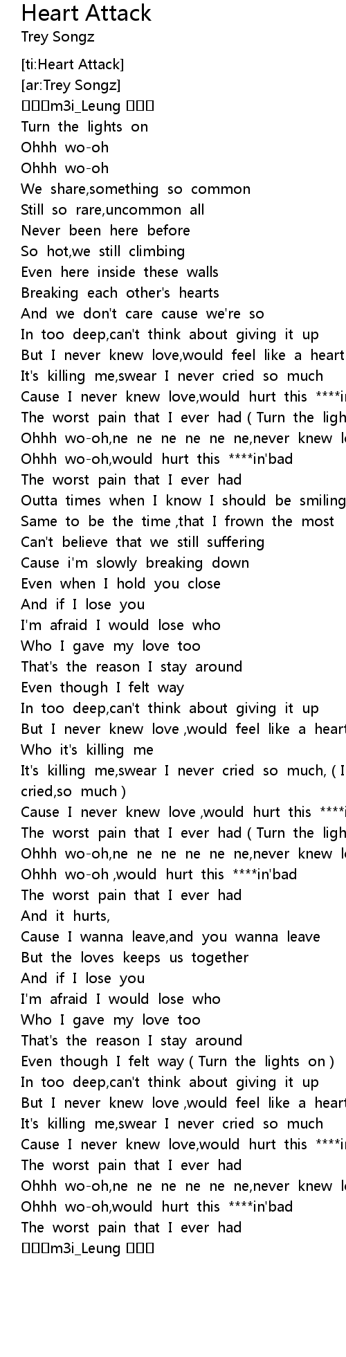 Heart Attack Lyrics Page 1 Line 17qq Com - Trey songz heart attack lyrics.
