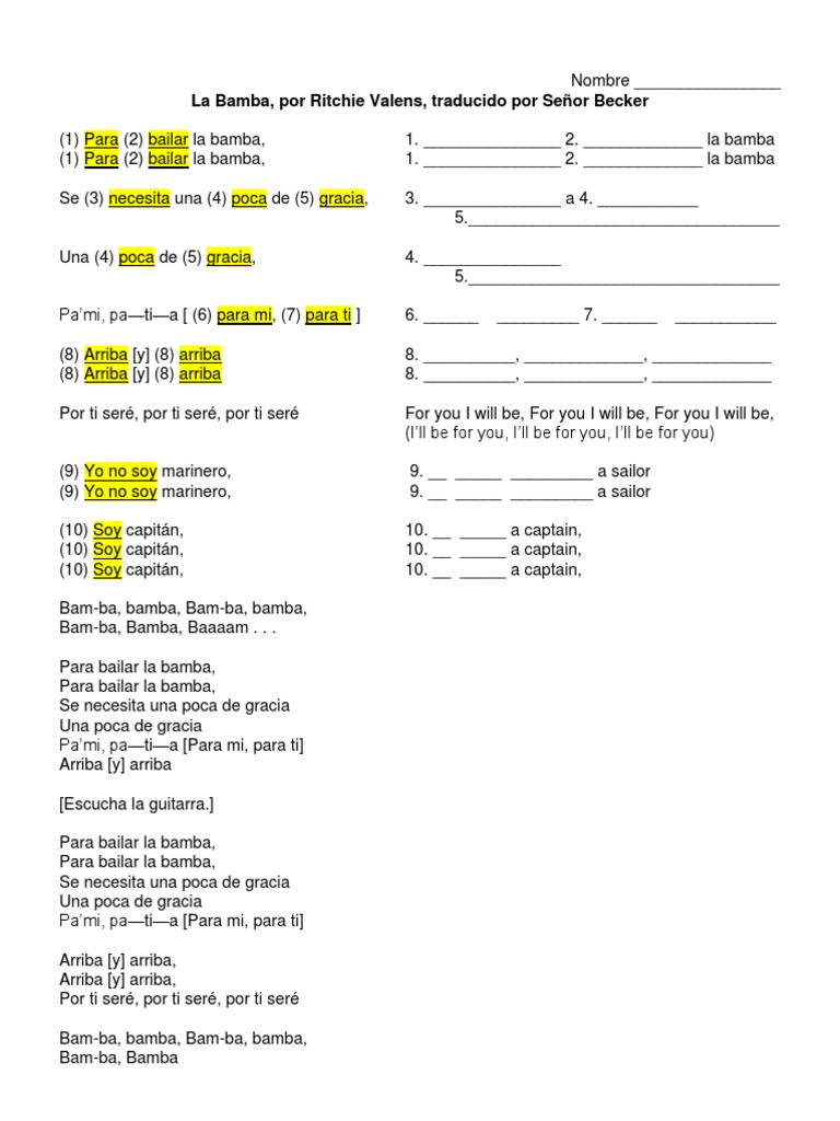 La Bamba Translation / If to dance the bamba.