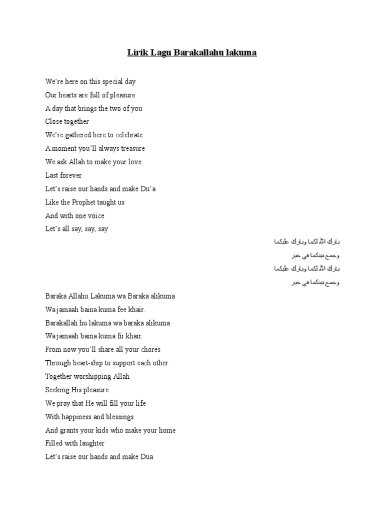 Lirik Lagu Barakallahu Lakuma Dan Artinya - Anda bisa berlangganan atau membeli lagu ini lewat media digital resmi seperti. Lirik Lagu Barakallahu Lakuma Dan Artinya : Barakallah hu lakuma wa baraka alikuma wa jamaah baina kuma fii khair.