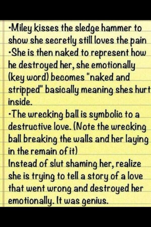 Wrecking Ball Song Analysis By Emily Mix By Emily Mix - That's our interpretation of some key phrases in miley cyrus' 'wrecking ball.' popcrushers, what do you think this song means?