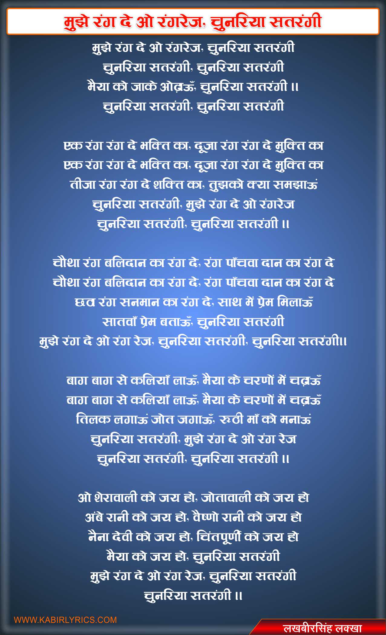 - .de rangrez, rung de rangrez rung de rangrez, rung de rangrez surmai shamo se mil ke satrange sapno popular sahir ali bagga lyrics.