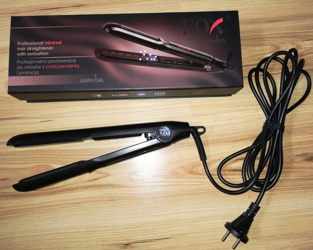 Prostownica Fox Samba Allegro - Wykorzystuje technologie infrared, zapobiega elektryzowaniu sie wlosow (jonizacja). Prostownica Fox Samba Allegro / Mozemy manewrowac w zakresie od 80oc do 220oc.