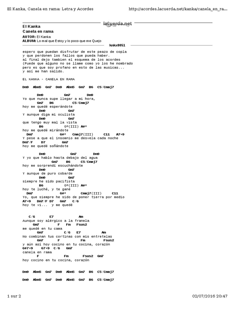 Rojizo Linear Unit Rama Canela En Rama Acordes El Kanka - Zobacz slowa utworu que bello es vivir wraz z teledyskiem i tlumaczeniem.