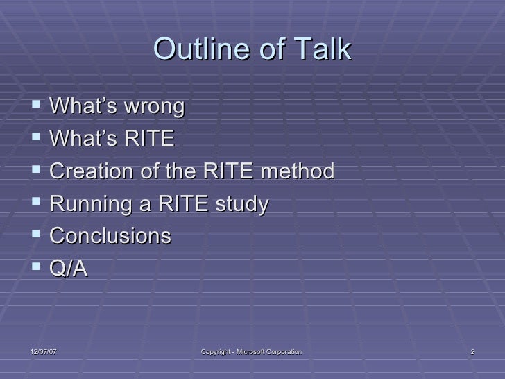 Rite Method / One key difference is data analysis and recommended changes happen after every participant. Rite Method - The rite method differs from traditional usability testing in many ways.